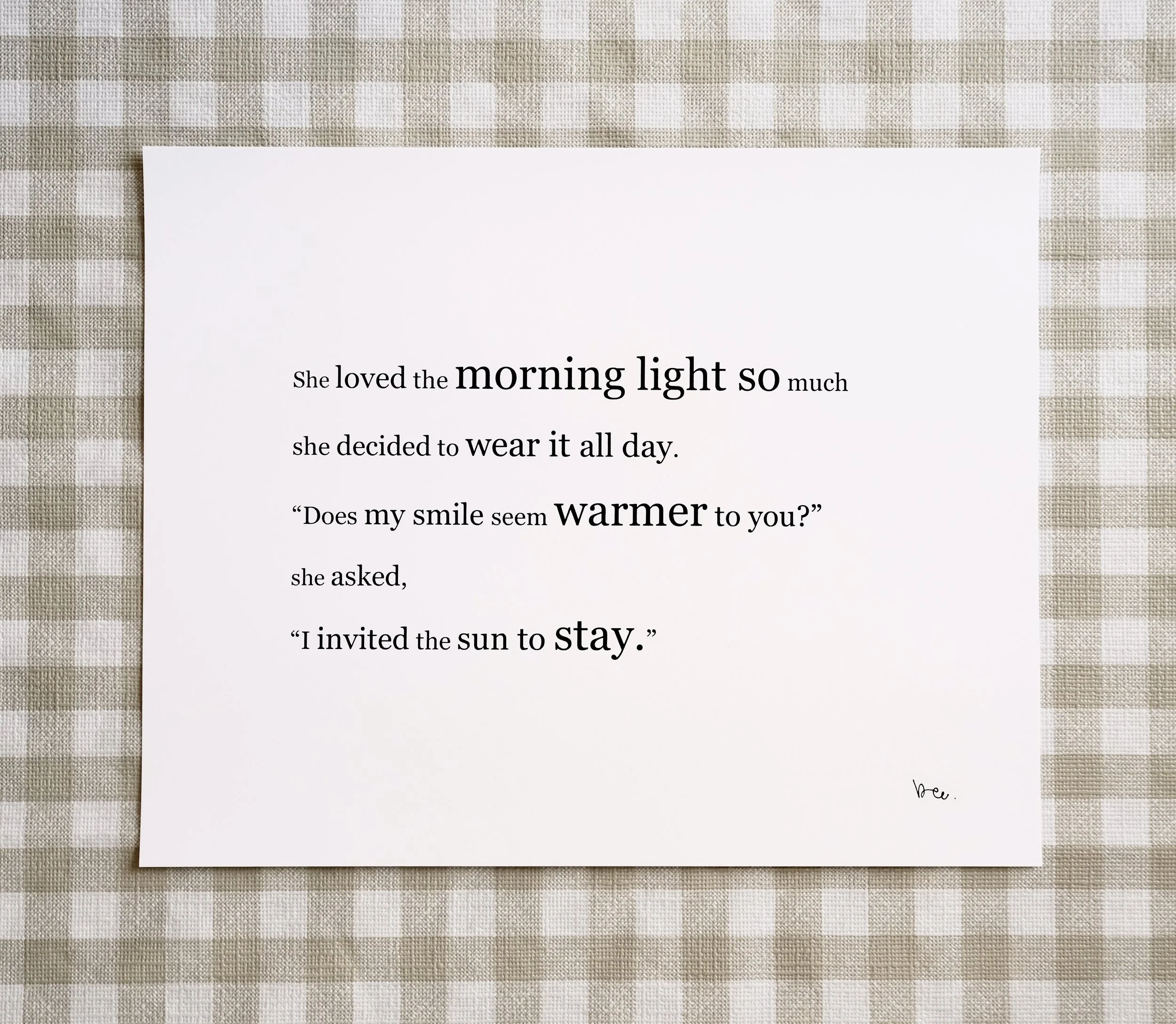 Shop Postcard Poetry $8.00 The Summer & I Keep Secrets Sale Price: $18.00 Original Price: $22.00 Sale Pack of 4 Blank Cards $20.00 Poetry Print $16.00